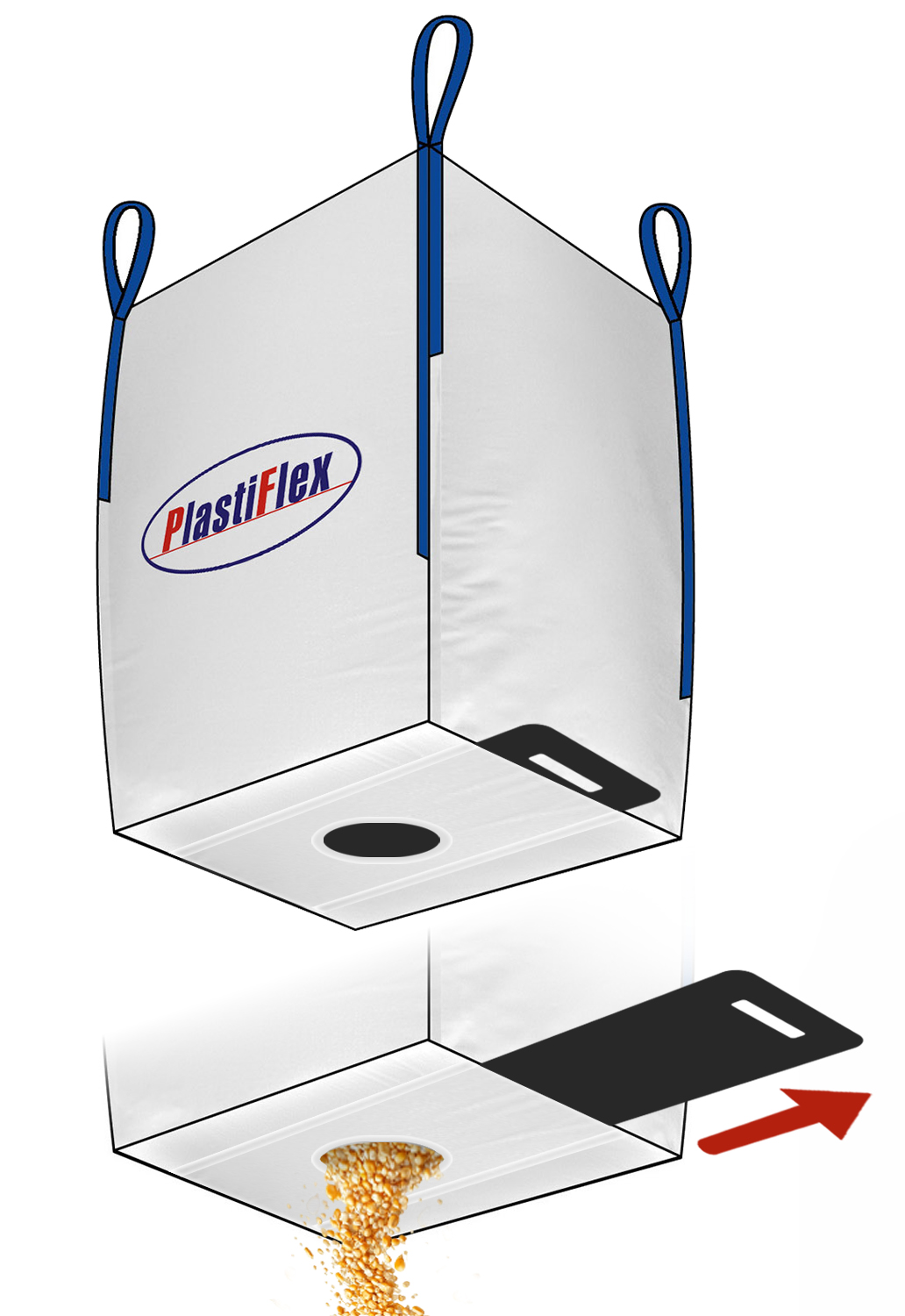 2-10 m3-ig. Anyaga légáteresztő PP szövet. Szakaszos ürítési lehetőség az aljára szerelt súberrel. Kúpos vagy egyenes fenékkel, állvánnyal vagy anélkül.